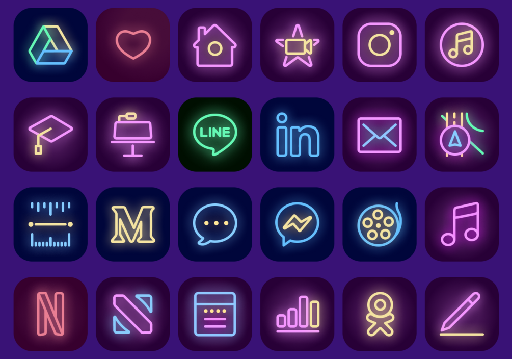 iOS 14 Icons Pack Theme "Neon Night"